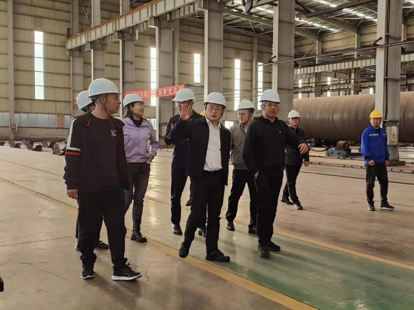 调研组一行首先来到开云网页版·官方版在线登入三期塔筒生产基地实地考察,参观了塔筒生产流水线,并听取开云网页版·官方版在线登入分管领导详细汇报了塔筒的制造工艺、生产流程、安全管理和产能布局等情况。