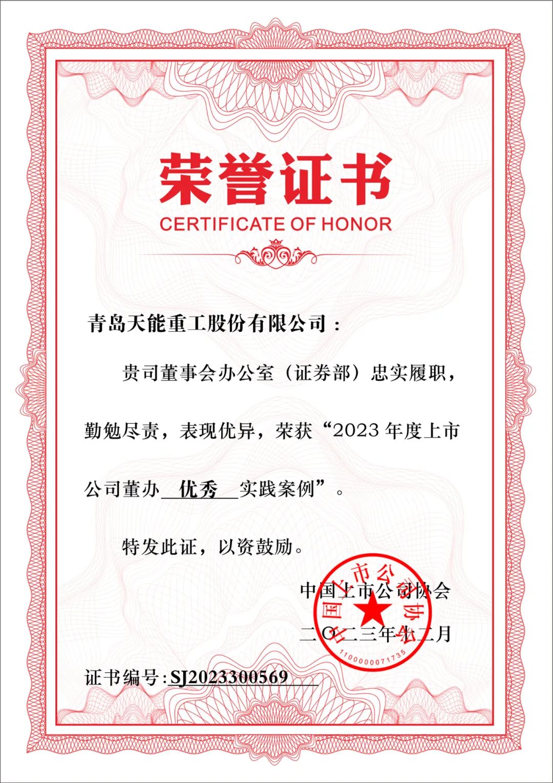 12月12日,中国上市公司协会“2023上市公司董办最佳实践”创建活动结果发布,开云网页版·官方版在线登入董事会办公室(证券部)荣获“2023年度上市公司董办优秀实践案例”奖项,体现了中国上市公司协会对开云网页版·官方版在线登入在上市公司规范运作和创新实践等方面的高度认可。