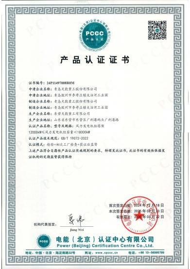 开云网页版·官方版在线登入作为风机装备制造细分领域的行业领军企业,始终将产品质量视为企业发展基石,通过系统化的质量管理体系建设,持续为风电行业客户提供安全可靠、质量稳定的高端装备产品。此次在维持原有5项产品单元资质基础上,在风力发电机组风机基础锚栓组件和塔架(12000kW≤风力发电机组容量<18000kW)领域率先获得PCCC认证,既是对公司技术创新实力和质量管理水平的认可,也为后续拓展风电装备市场提供了强有力的资质保障。