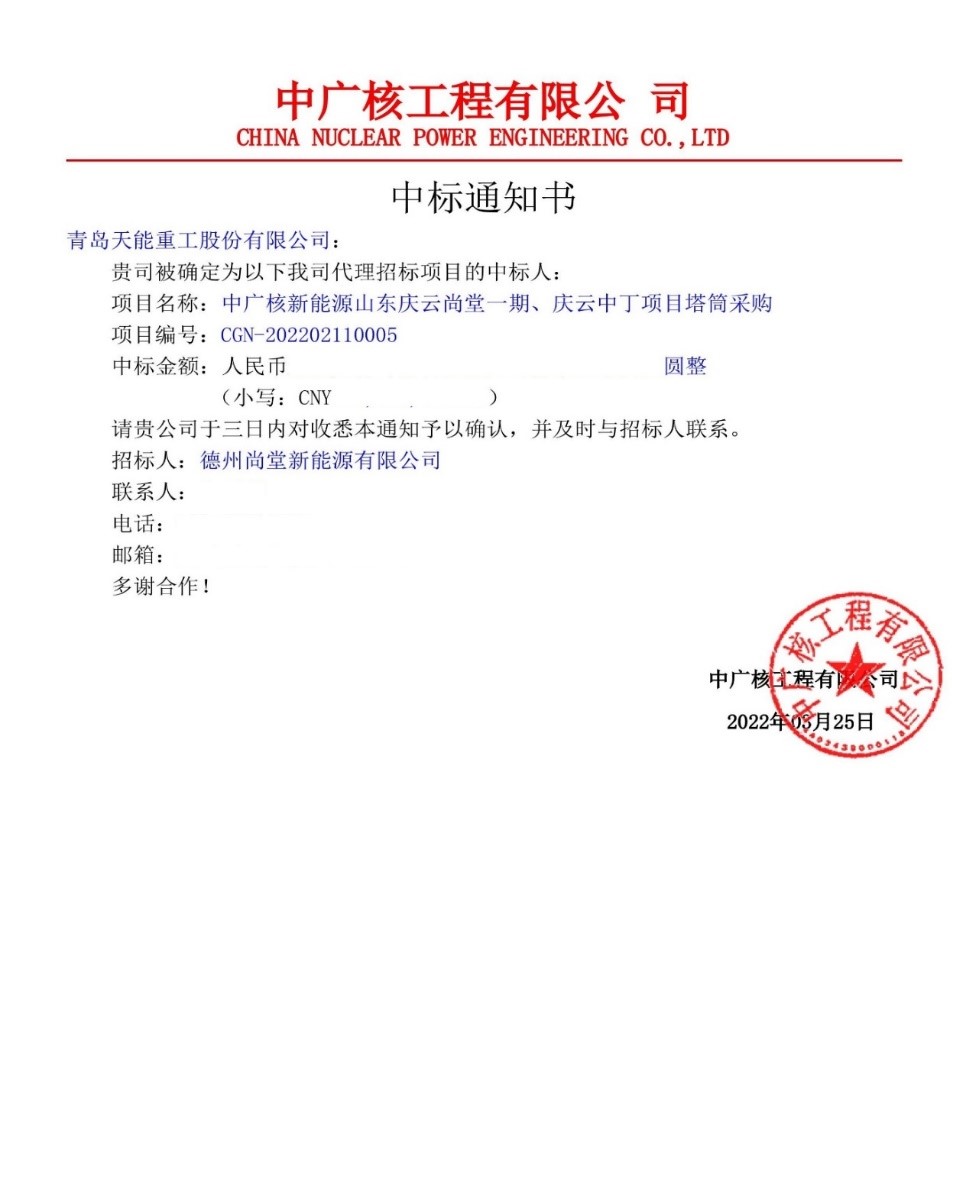 开云网页版·官方版在线登入中标中广核山东庆云尚堂一期、庆云中丁项目塔筒采购