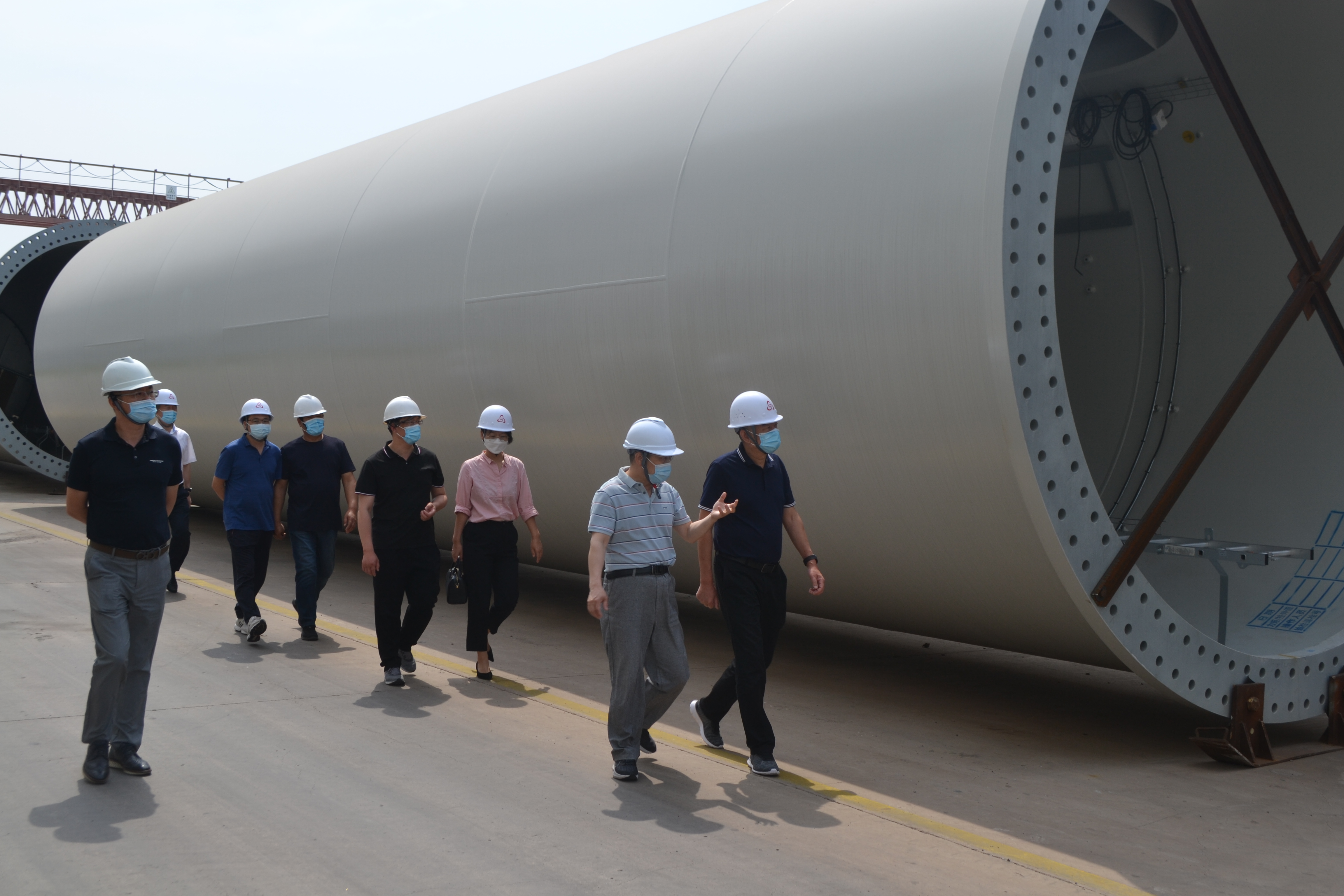 调研团队一行首先前往青岛开云网页版·官方版在线登入三期塔筒生产基地进行参观,现场听取了郑旭对塔筒生产工艺、加工流程、生产基地布局等相关情况的介绍,并且进一步了解了厂区安全生产、疫情防控等相关措施。