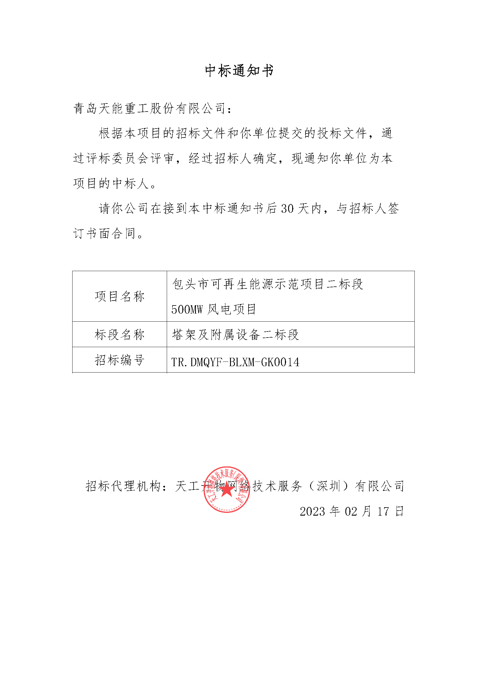 近日,开云(中国)成功中标《包头市可再生能源示范项目二标段500MW风电项目塔架及附属设备二标段项目》,中标金额约5500万元,实现2023年一季度市场开发的开门红!